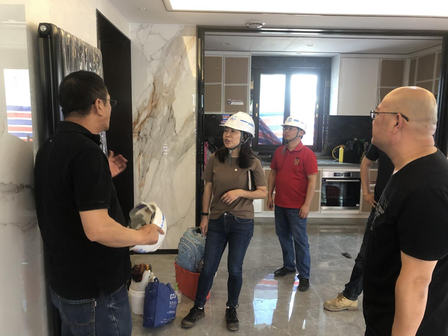 袁明紅詳細了解了項目現(xiàn)場的質量、安全、進度、文明施工等情況,參觀了精裝修樣板房,針對項目質量控制、安全管理等方面提出了三點要求:一是要嚴把質量關,做到項目質量管理精細化;二是時刻繃緊安全這根弦,杜絕安全事故的發(fā)生;三是對樣板房精裝修進行細節(jié)優(yōu)化,確保產品的高品質。