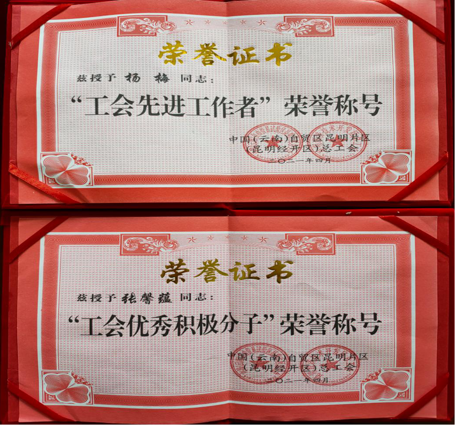 4月15日上午,中國(云南)自由貿(mào)易試驗(yàn)區(qū)昆明片區(qū)(昆明經(jīng)開區(qū))總工會召開2021年工作會。通泰公司工會榮獲2020年經(jīng)開區(qū)總工會工作目標(biāo)完成“特優(yōu)單位”,楊梅榮獲先進(jìn)工作者稱號,張馨蘊(yùn)榮獲先進(jìn)工會積極分子稱號,安黔獲選昆明市總工會第十六次代表大會經(jīng)開區(qū)代表。