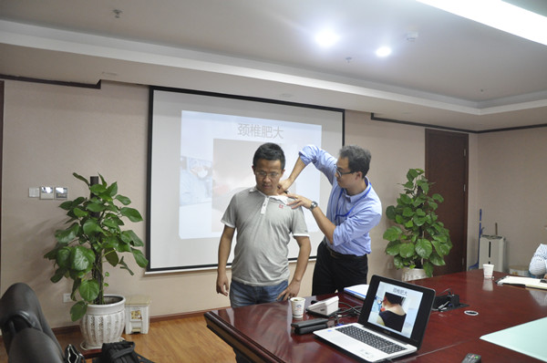 肖老師憑借豐富的經(jīng)驗(yàn),運(yùn)用生動的語言和貼近生活的實(shí)例,圍繞CPR現(xiàn)場緊急救護(hù)知識、職業(yè)性疾病的預(yù)防及改善、職場人員心理健康、慢性病的預(yù)防和改善,重點(diǎn)講述了緊急救護(hù)知識、肩周炎、頸椎病、腰肌勞損和高血壓、職員心理素質(zhì)、“油肚”的預(yù)防等辦公室常見疾病的預(yù)防。講座采取集中授課、現(xiàn)場答疑、解讀病例相結(jié)合的方式,職工認(rèn)真聽講、仔細(xì)記錄。講座結(jié)束后,肖老師還與大家進(jìn)行了交流互動,就一些疾病的防治給予健康咨詢,并對有關(guān)指標(biāo)進(jìn)行檢測。